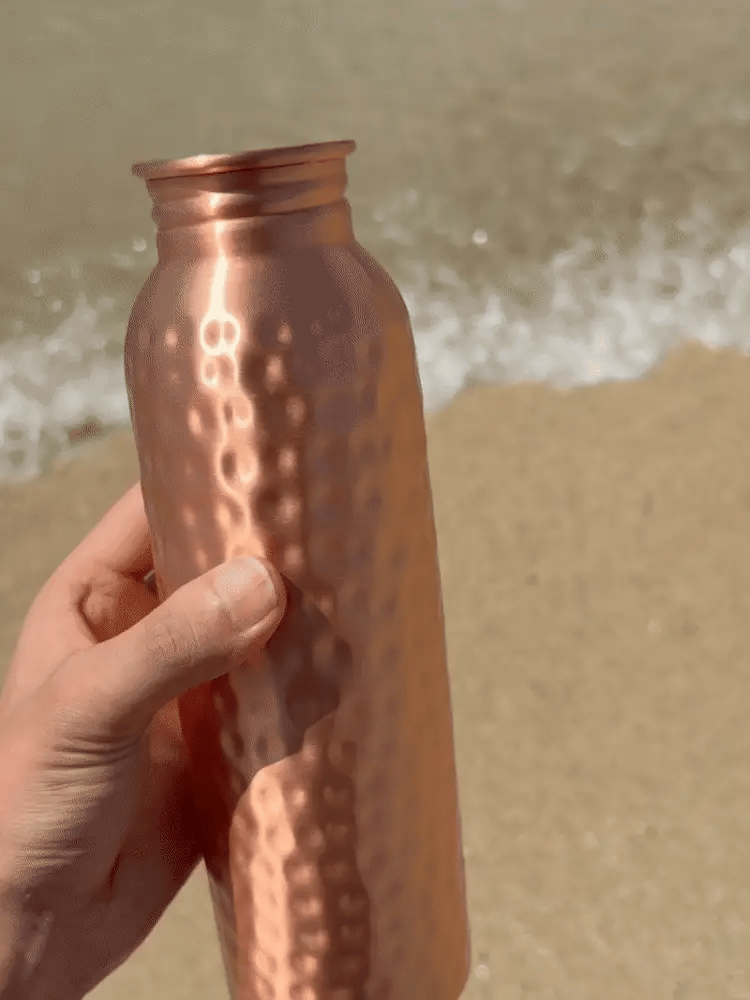 Perfect travel size! Took it Paris β Dubai. Leakproof, beautiful enough for cafe tables, copper water tastes cleaner than hotel bottles.