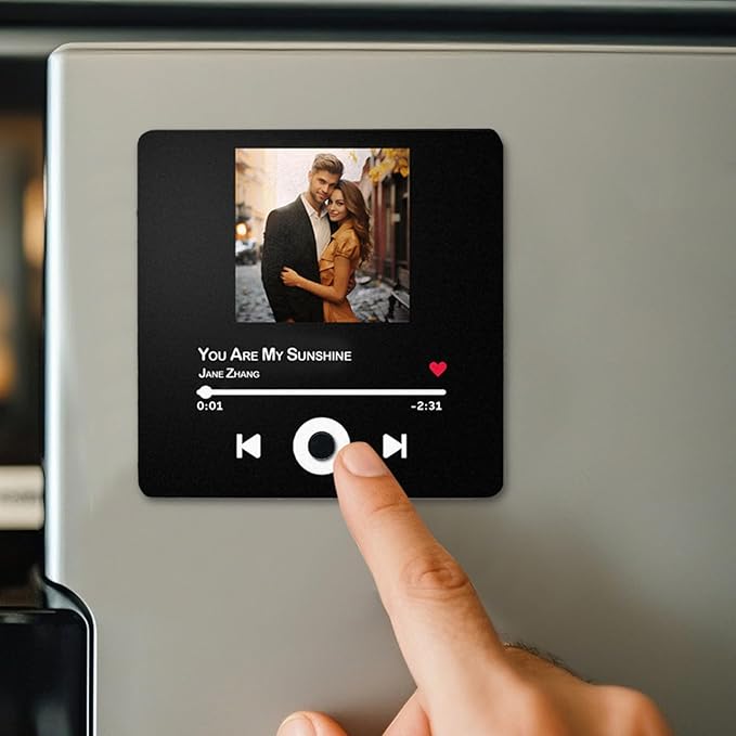 Turn everyday moments into musical memories with our Customized Photo Music Fridge Magnet. Crafted from durable acrylic (10.8 x 10.8 x 2.2 cm), this rectangular magnet transforms your fridge into a personalized jukebox – simply upload your favorite photo, song title, and artist details to create a mini album cover that plays your chosen track at the touch of a button. No metals or high-concern chemicals, just fashion-forward design perfect for music lovers.